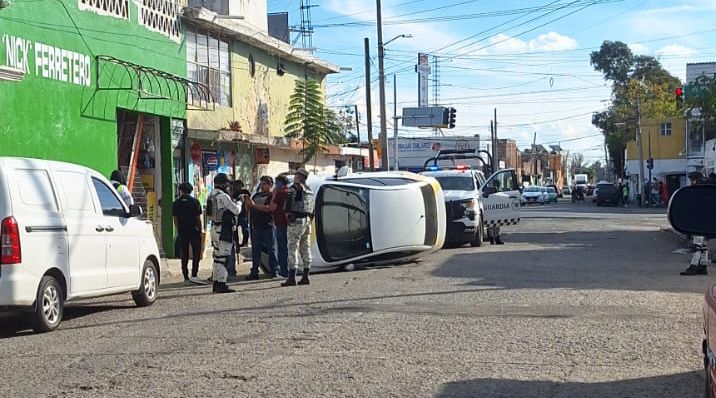 El conductor de un automóvil Versa en color blanco volcó en plena colonia 12 de Diciembre en Irapuato la tarde de este jueves.