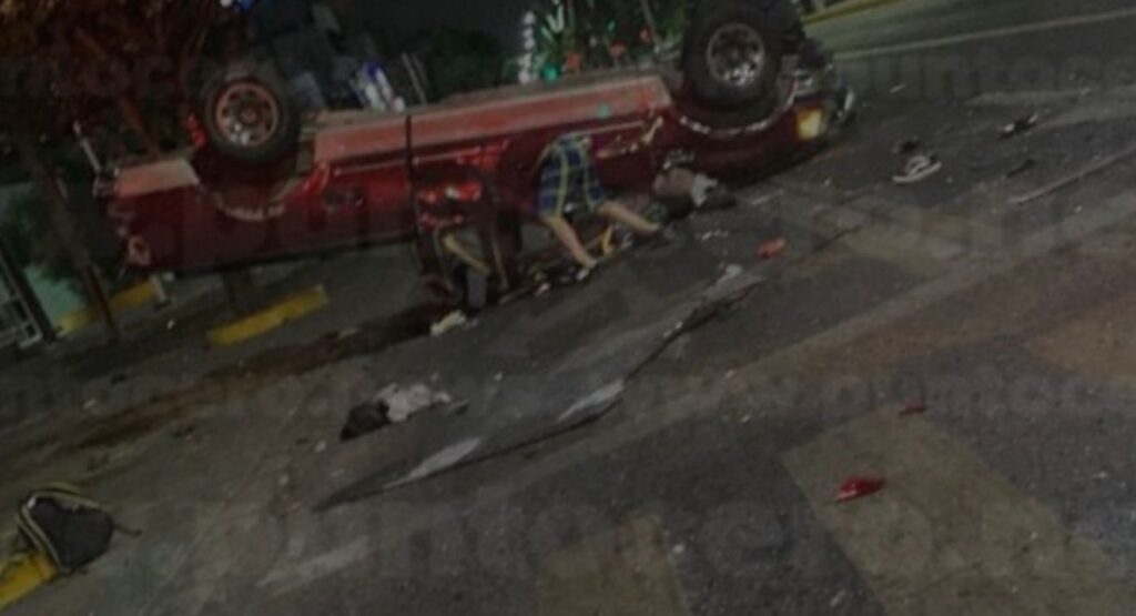 Derivado de la fuerza del impacto, uno de los ocupantes, quien viajaba en la parte trasera de una camioneta tipo pickup, salió disparado fuera del vehículo.