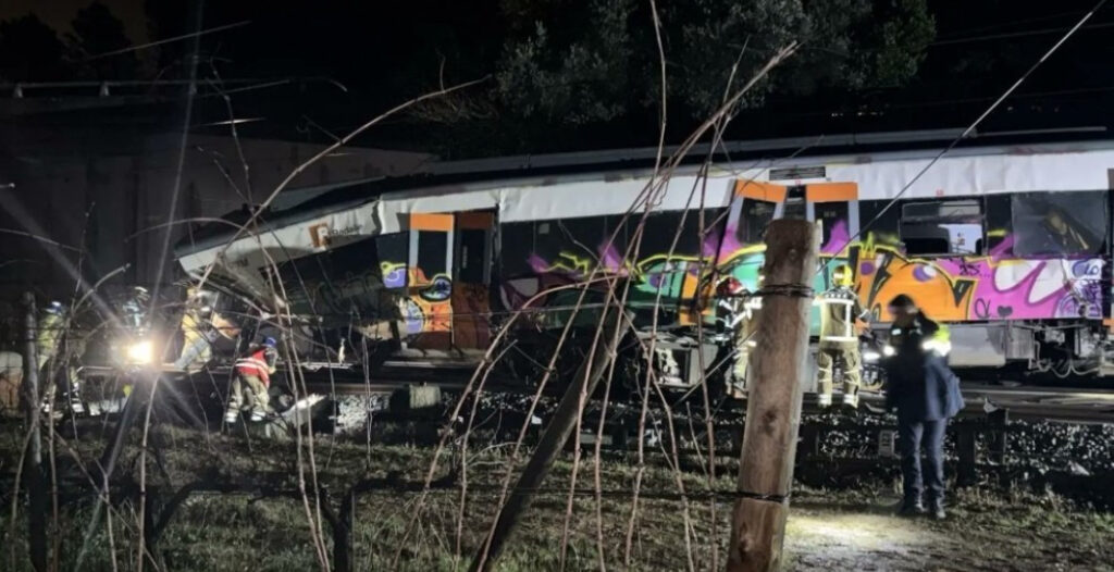 El accidente ocurrió en las cercanías entre las poblaciones de Sant Sadurni d’Anoia y Gelida, a unos 40 kilómetros de Barcelona. Un muro de contención se desprendió y cayó sobre la vía férrea, por donde en ese momento circulaba el tren con pasaje.