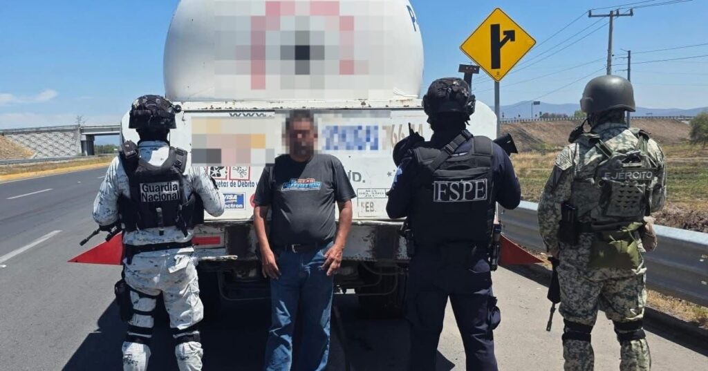 La Secretaría de Seguridad y Paz informó el aseguramiento de una pipa cargada con más de 11 mil litros de gas LP, así como la detención de un hombre durante un operativo coordinado en la comunidad de Plancarte.
