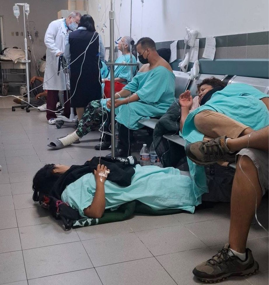 Las imágenes también dejan ver a pacientes con signos visibles de malestar, y sangre, mientras familiares permanecen junto a ellos durante lapsos prolongados de espera.