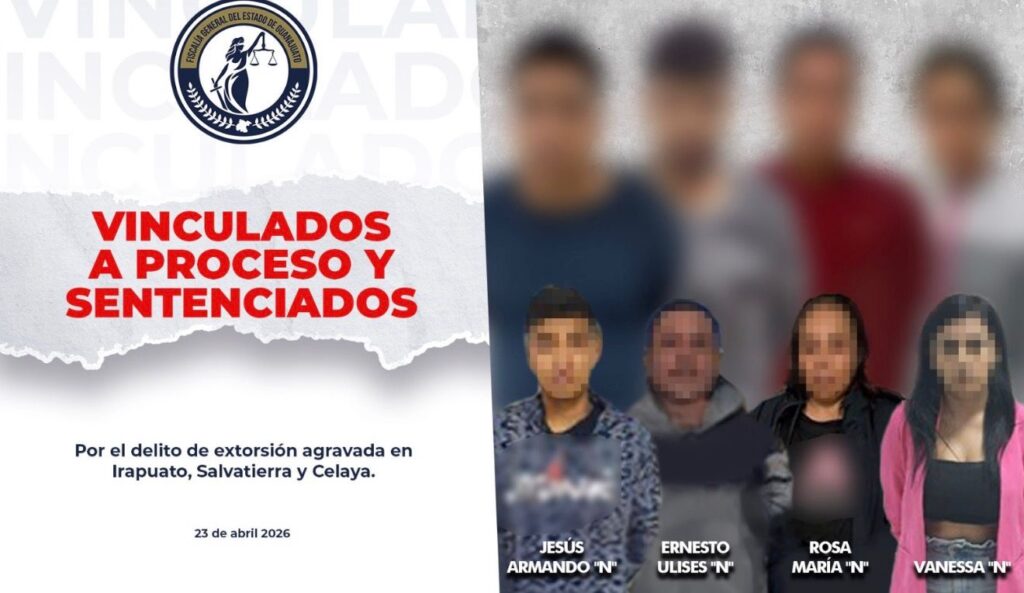 Como resultado del proceso penal, fueron sentenciados Jesús Armando, Ernesto Ulises, Rosa María y Vanessa, quienes operaban mediante el cobro de cuotas a comerciantes y habitantes de un fraccionamiento en los municipios de Celaya e Irapuato.
