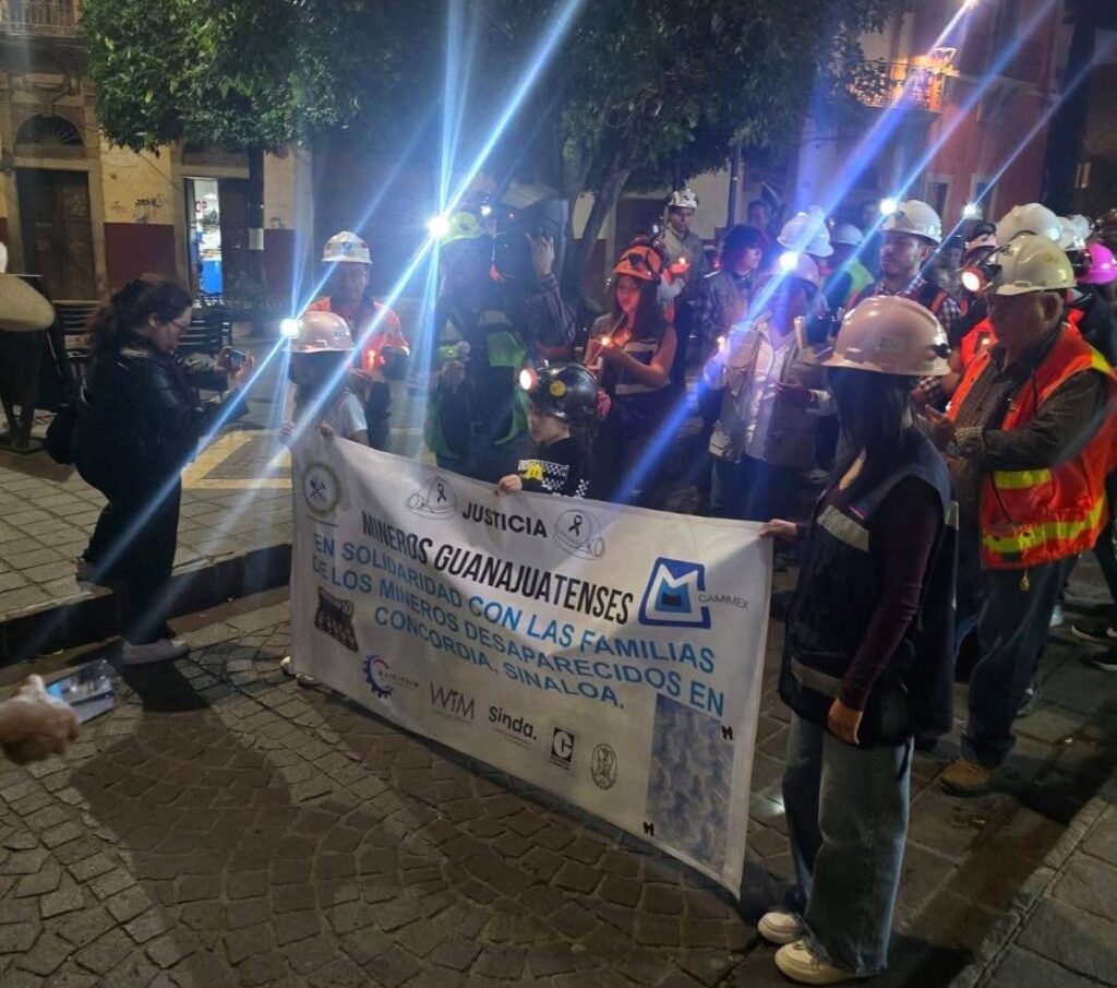 Cerca de un centenar de mineros realizaron la noche de este martes una marcha en silencio en Guanajuato capital, en solidaridad con los 10 trabajadores del sector desaparecidos en el municipio de La Concordia, Sinaloa.