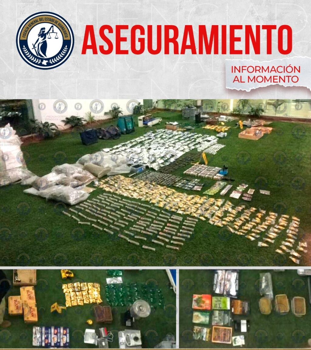 Un cateo realizado por la Fiscalía General del Estado de Guanajuato en la colonia San Juan de Dios, en León, permitió el aseguramiento de droga, productos procesados y equipo industrial presuntamente destinado a la elaboración de narcóticos.