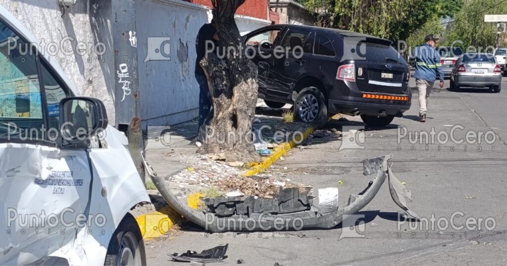 Tras el impacto, la camioneta Edge perdió el control y terminó estrellándose contra un muro, cuya estructura fue parcialmente derribada al grado de que la parte frontal del vehículo se introdujo en una vivienda ubicada sobre la calle Aldama.