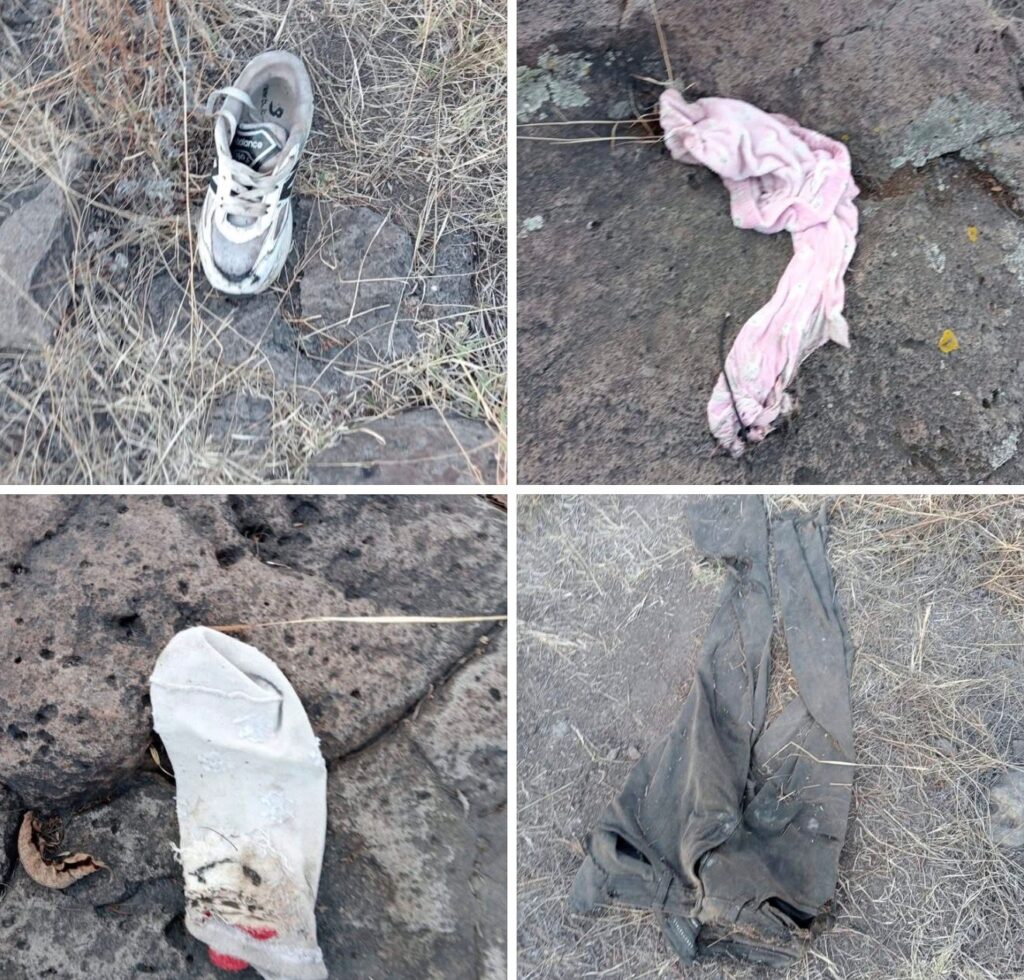 Adicionalmente, se aseguraron restos óseos consistentes en fragmentos de cráneo, húmero, peroné y tibia, así como tenis New Balance blanco con negro número 25 y un pants negro con la leyenda Aeropostale en la etiqueta.
