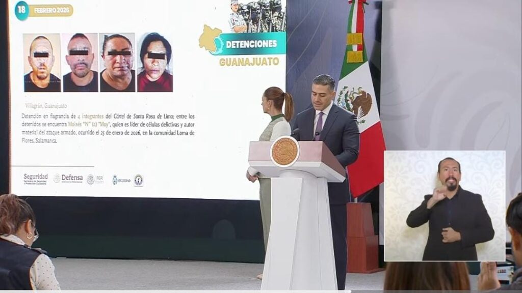 Irapuato, Guanajuato. – Durante la «Mañanera del Pueblo» encabezada por la presidenta Claudia Sheinbaum Pardo en este municipio, el Secretario de Seguridad y Protección Ciudadana, Omar García Harfuch, informó sobre la captura de Moisés «N», alias «El Moy», identificado como el autor material del multihomicidio ocurrido el pasado 25 de enero en un campo de fútbol en Salamanca.
