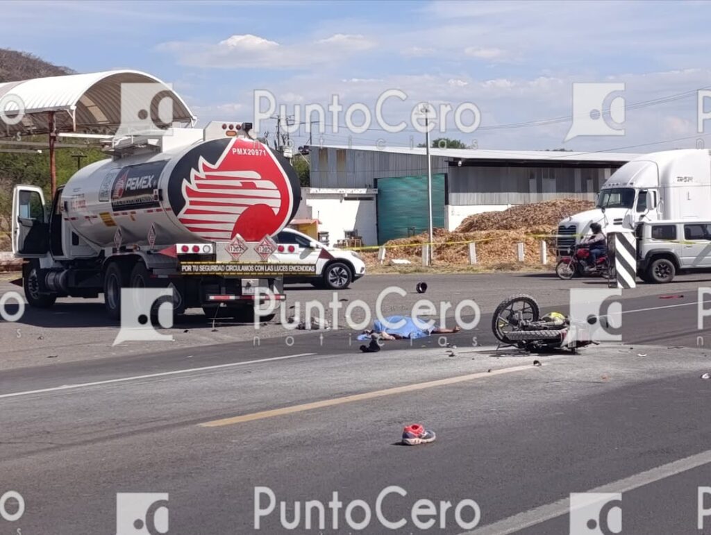 La motocicleta quedó sobre la parte central de la carpeta asfáltica, mientras que el cuerpo del conductor quedó en una de las laterales de la carretera. En el percance también participó una pipa propiedad de la empresa Petróleos Mexicanos (PEMEX), la cual permaneció en el acceso a la gasolinera.