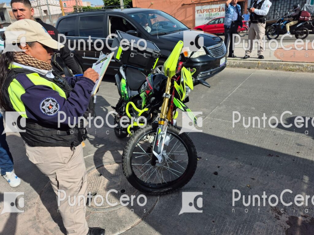 El lesionado tripulaba una motocicleta tipo Cross, color verde, la cual, tras el choque, presentó daños en la parte frontal.