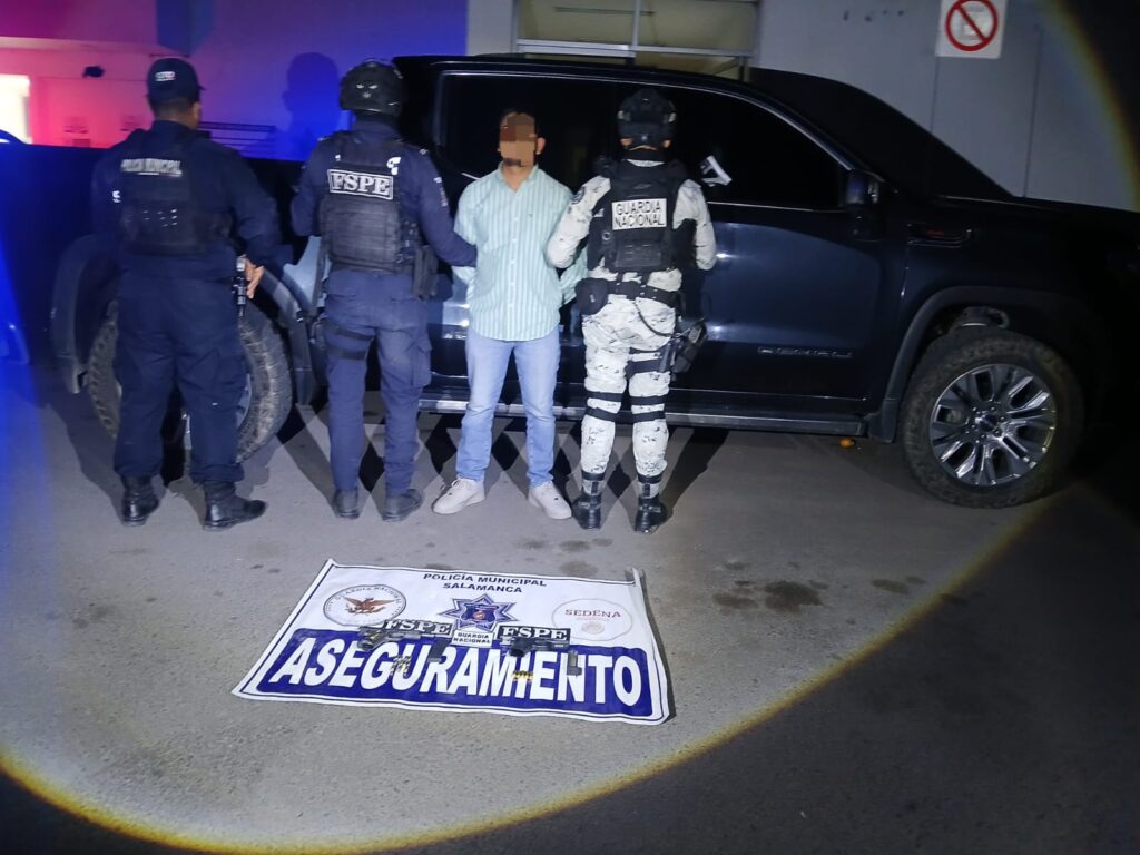 El operativo conjunto entre la Dirección General de Seguridad Pública de Salamanca, la Guardia Nacional y las Fuerzas de Seguridad Pública del Estado resultó en la detención de Jonathan N., quien fue encontrado con dos armas de fuego tras intentar eludir un filtro de vigilancia en la colonia Lázaro Cárdenas.