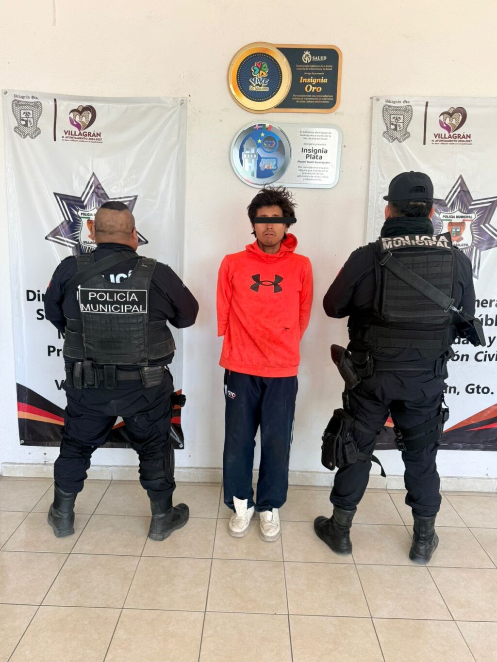 Villagrán, Guanajuato, 28 de enero de 2026.- La Dirección General De Seguridad Pública, Movilidad y Protección Civil llevó a cabo la detención de un presunto extorsionador, después de recibir una denuncia anónima a través del sistema de emergencias 911.