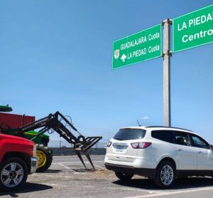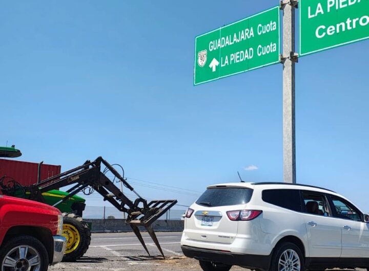 Transportistas y agricultores mantienen bloqueada la carretera Pénjamo–La Piedad este lunes 6 de abril, en el tramo...
