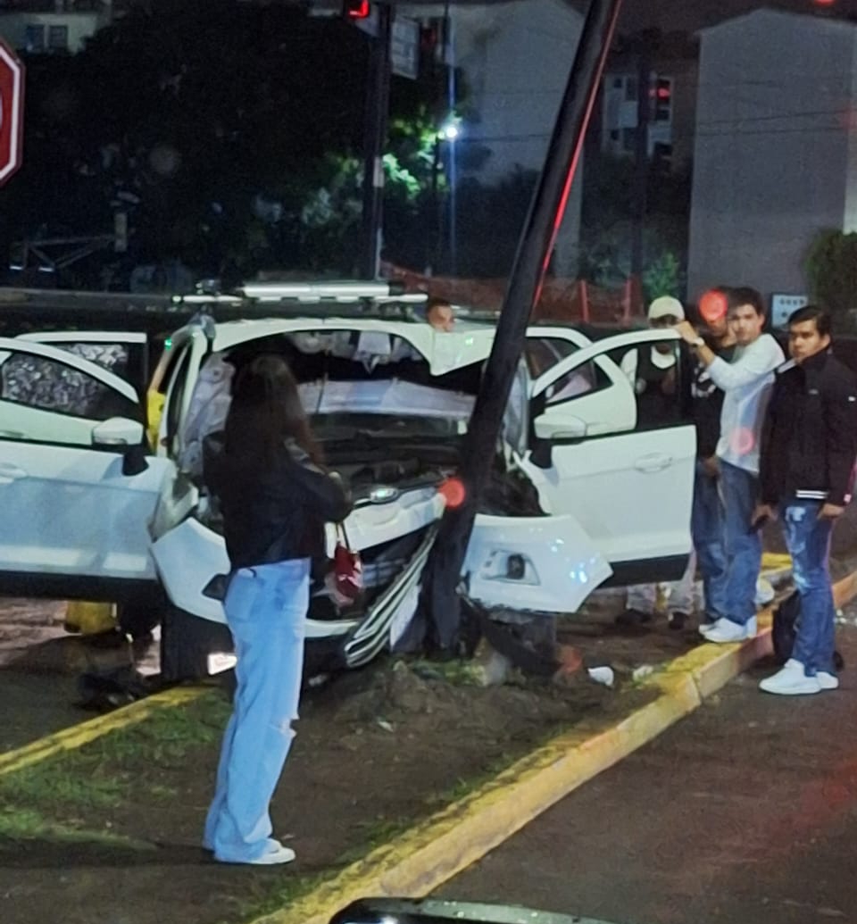 A la zona acudieron elementos de vialidad quienes localizaron una camioneta de color blanco que se impacto contra un poste de alumbrado público.