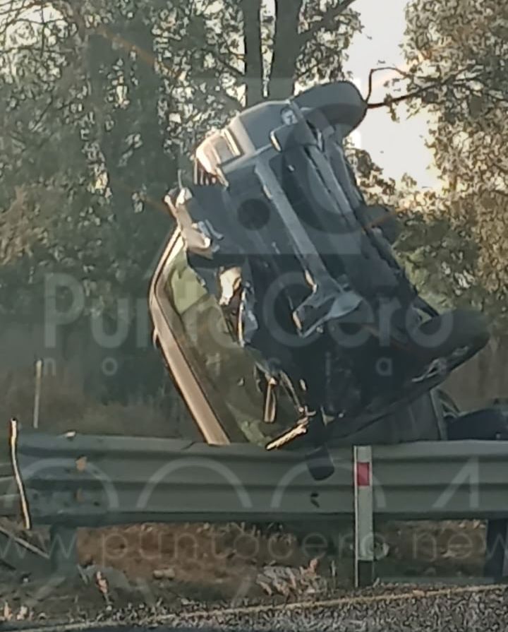 La camioneta terminó impactándose contra los muros de contención centrales, quedando semivolcada sobre ellos.