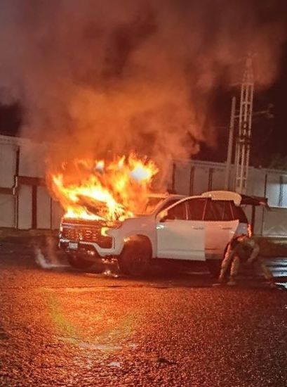 En este sitio, la unidad comenzó a incendiarse en la parte del cofre, y pese a que los agentes trataron de parar el fuego con extinguidores, este avanzó y consumió la unidad.