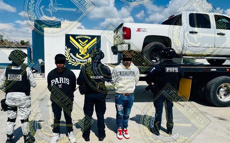 La camioneta fue trasladada con apoyo de una grúa y puesta a disposición de la autoridad competente junto con los detenidos, para deslindar responsabilidades legales.