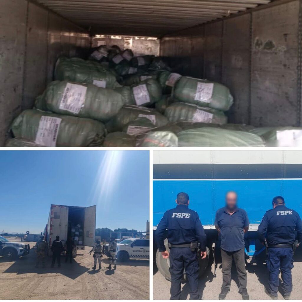 Integrantes de las Fuerzas de Seguridad Pública del Estado aseguraron un tractocamión cargado con 20 toneladas de mercancía extranjera cuya legal posesión no pudo ser acreditada por el conductor, al no contar con la documentación correspondiente; una persona fue detenida.