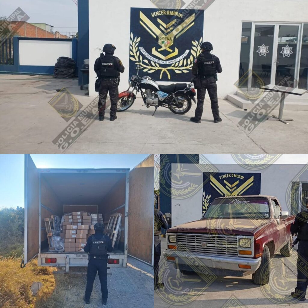 La Dirección de Seguridad Pública, en coordinación con la Secretaría de Seguridad Pública del Estado, informó sobre la recuperación y aseguramiento de tres unidades con reporte de robo, resultado de acciones de patrullaje y respuesta inmediata en Apaseo el Alto.