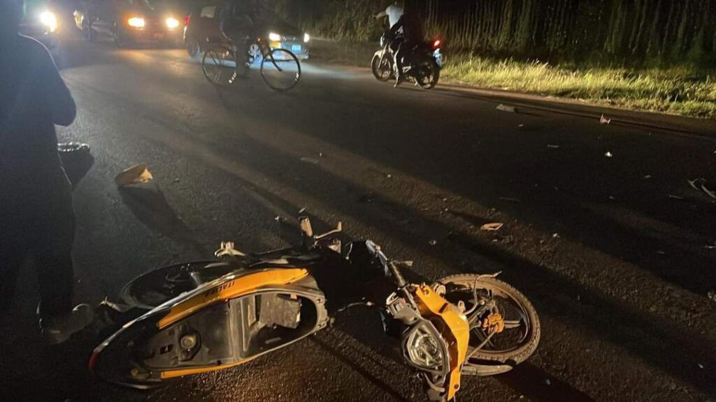 La motocicleta quedó tirada sobre la carretera, mientras que el automóvil involucrado permanecía a unos metros del sitio del impacto.