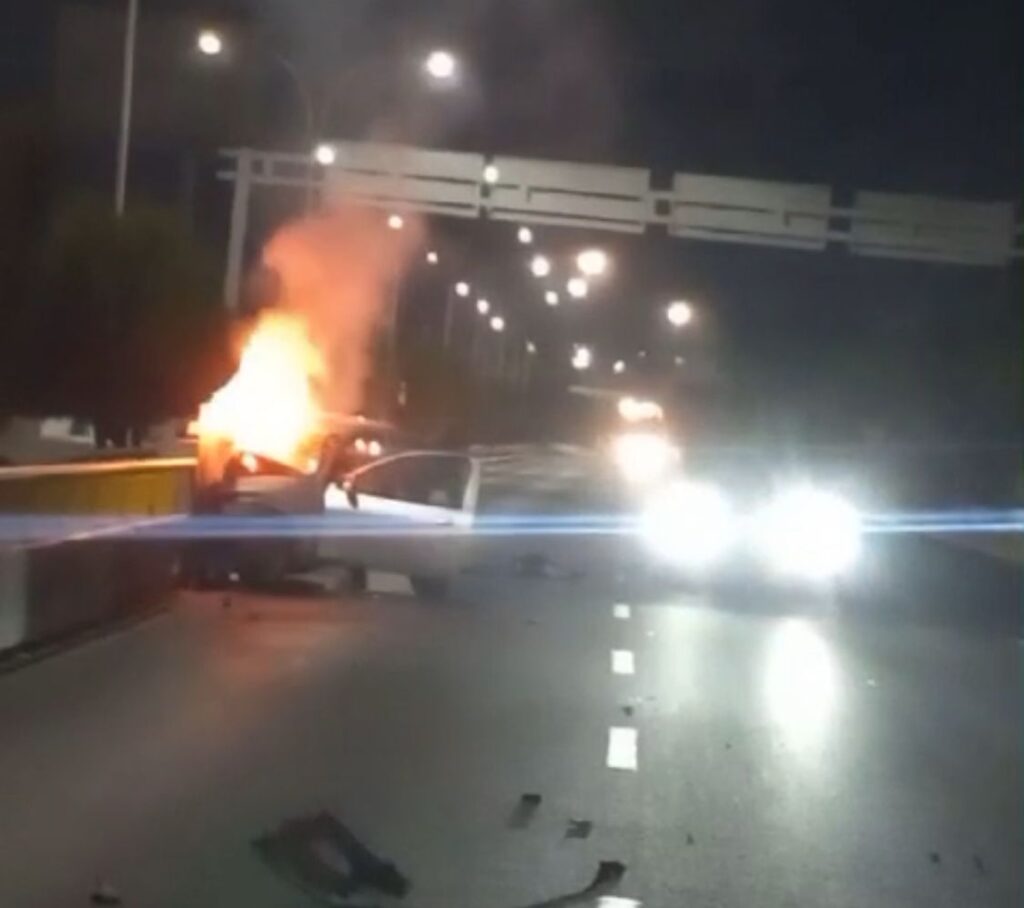 • Auto choca contra muro de contención y se incendia en la carretera León-Silao