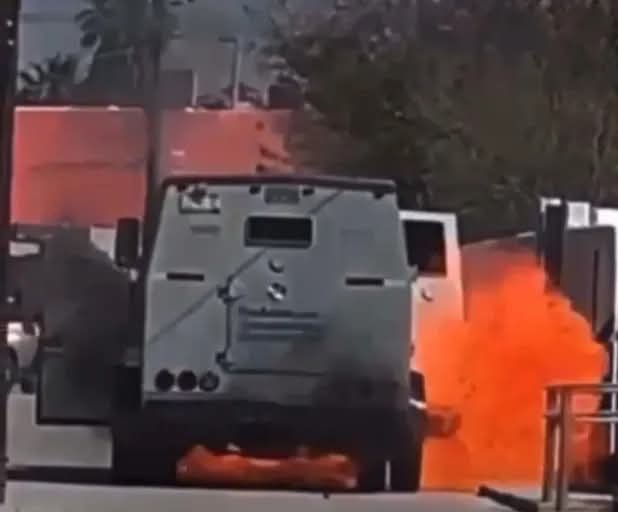 • Camión de valores arde en llamas frente a Banco del Bienestar en Mapimí