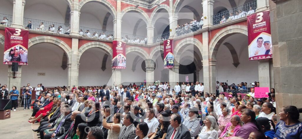 El claustro menor de San Agustín, más conocido como la casa de la cultura, fue la sede donde el alcalde Salmantino rindió su tercer informe.