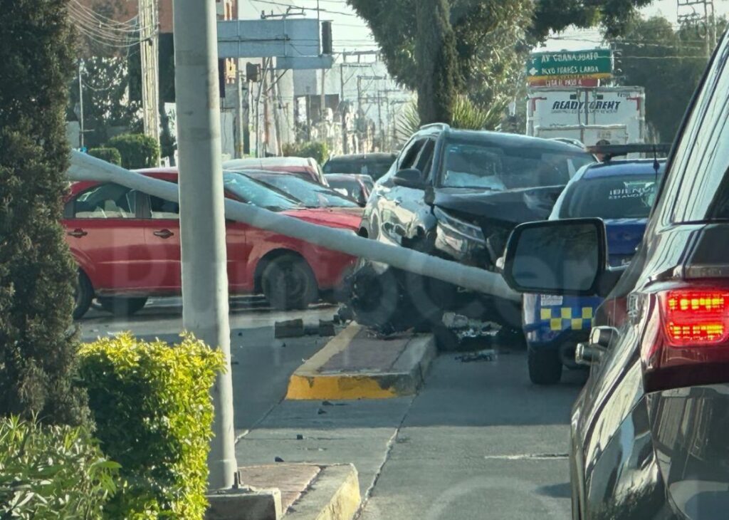 La tarde de este viernes 13 de diciembre, el conductor de una camioneta Kia protagonizó un fuerte accidente al chocar contra un poste metálico de alumbrado público en la avenida Casimiro Liceaga, casi esquina con Francisca Delgado, frente a Banamex.