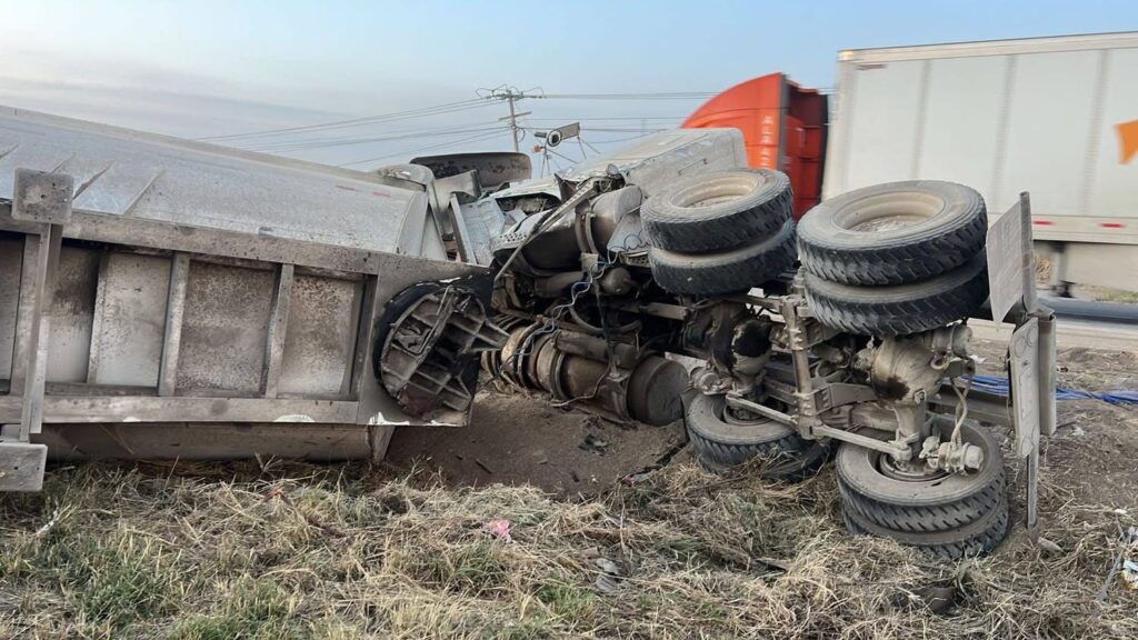 De acuerdo con los primeros reportes, el percance ocurrió cuando ambas unidades circulaban sobre el mismo tramo vial y, por causas aún no determinadas, el tráiler chocó con el costado del camión de transporte de personal, provocando daños significativos en ambas unidades.