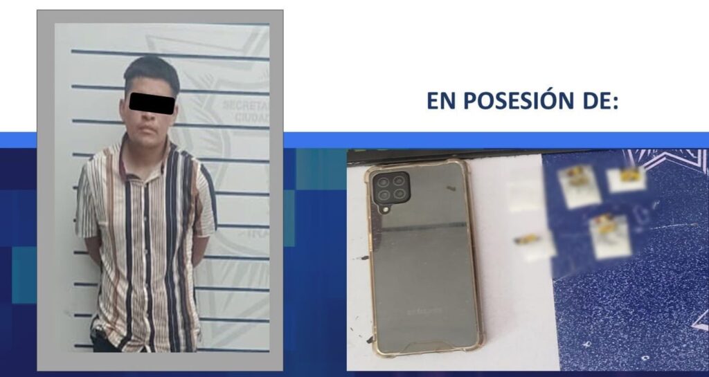 El detenido fue identificado como Miguel Ángel, de 23 años de edad, quien además registra ocho ingresos previos a prisión por diversos delitos y faltas administrativas.