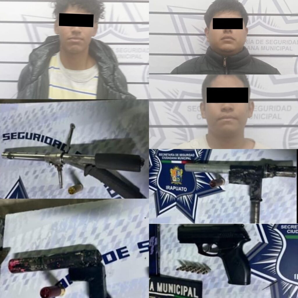 En posesión de armas, cuatro hombres fueron detenidos por integrantes de Policía Municipal en la Colonia Bajada de San Martín, reportó la Secretaría de Seguridad de Irapuato.