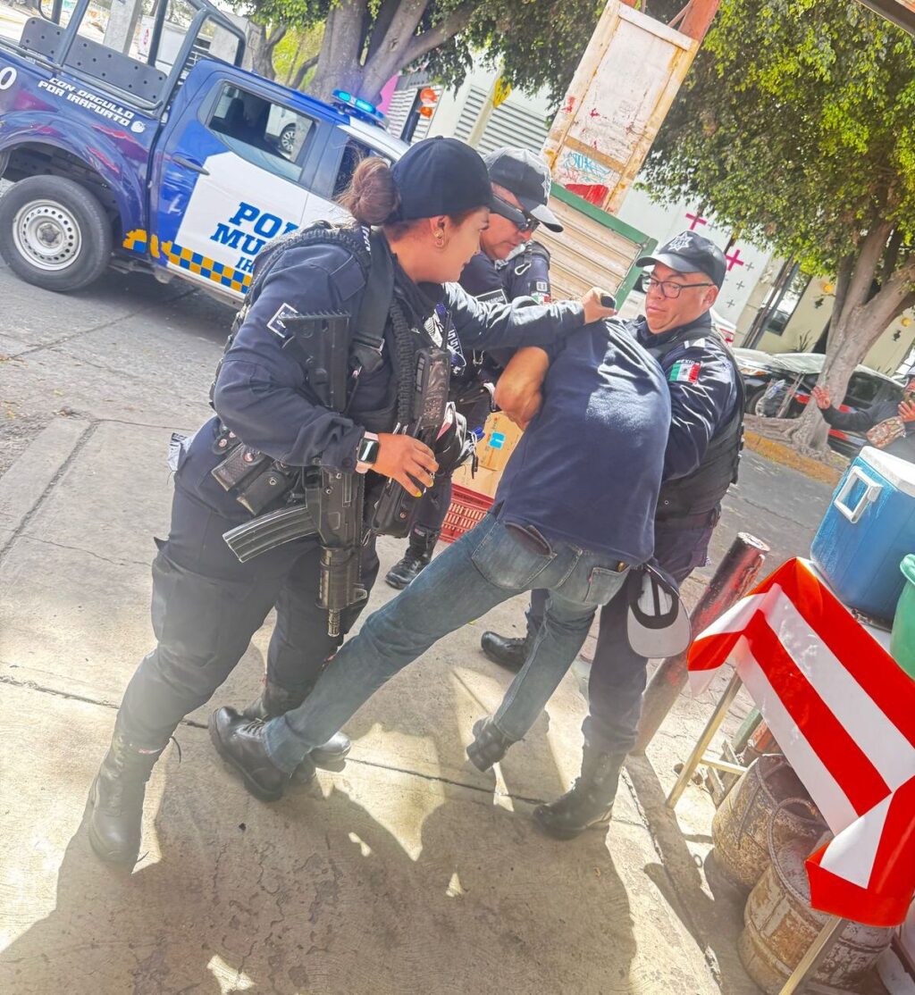 El hecho ocurrió en la tarde del miércoles 19 de febrero, cuando los oficiales realizaban el procedimiento de retiro de personas migrantes que estaban limpiando parabrisas en el cruce de la Avenida Euquerio Guerrero y el Bulevar Arandas. Durante la intervención, el sujeto intentó interferir en la revisión, agrediendo verbalmente a los policías y realizando actos de violencia en su contra.