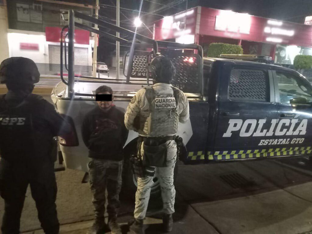 Un hombre fue detenido en la colonia Purísima del Jardín durante un patrullaje preventivo realizado por las Fuerzas de Seguridad Pública del Estado en coordinación con la Secretaría de la Defensa Nacional y la Guardia Nacional, como parte de los operativos de Células Mixtas de la estrategia estatal CONFIA.