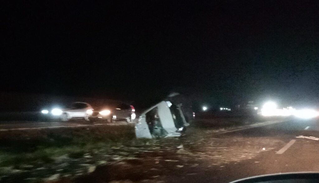 La unidad quedó recostada en la cuneta, con daños de consideración.