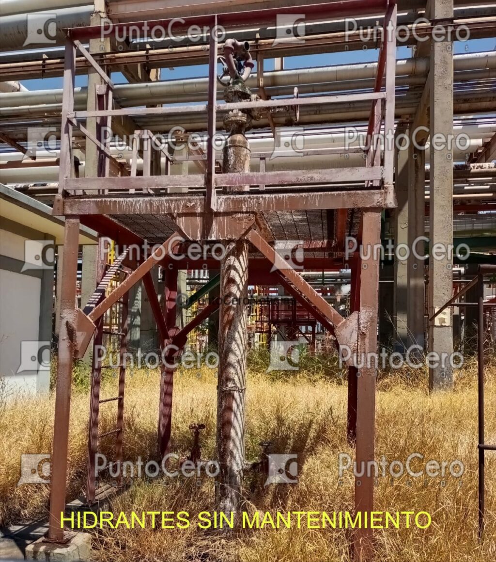 • Red contraincendio colapsada: La red de tuberías de toda la refinería es un colador de fugas. De las 12 bombas destinadas a dar presión al sistema (seis por cada una de las dos estaciones), ni una sola está en servicio.