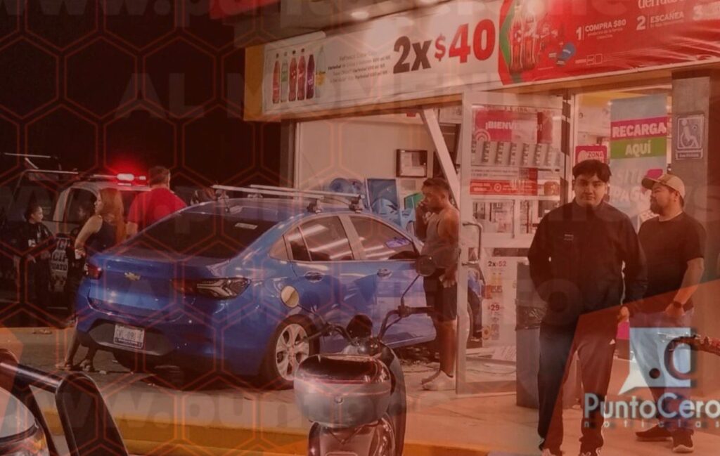 En este punto, un vehículo terminó impactado en una tienda de conveniencia Oxxo.