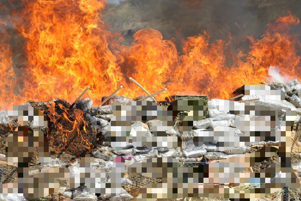 Como resultado, se destruyeron 142 mil 249 indicios que en conjunto superan las 10 toneladas, además de 12 mil 796 objetos diversos con un peso cercano a las 3 toneladas, entre herramientas, prendas y equipo táctico vinculados a múltiples investigaciones.