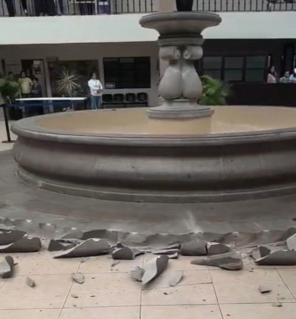 Un sujeto ingresó a Palacio Municipal y comenzó a golpear la orilla de la fuente, construida a base de cantera.