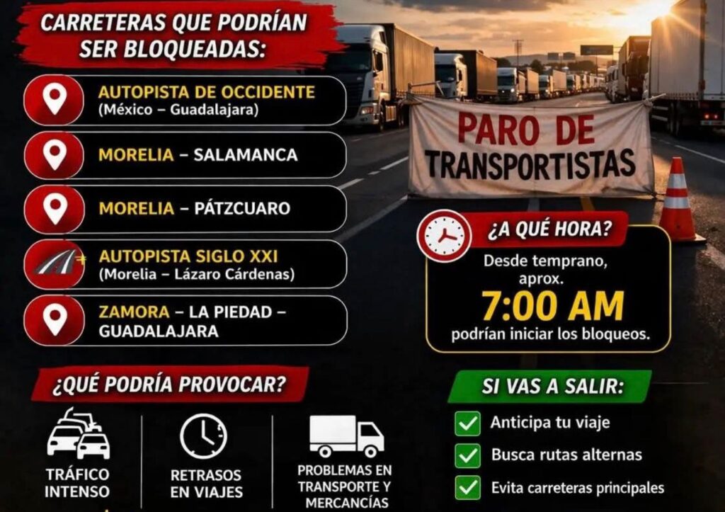 También se consideran afectaciones en la ruta Zamora–La Piedad–Guadalajara, lo que podría generar complicaciones para automovilistas y transporte de carga.