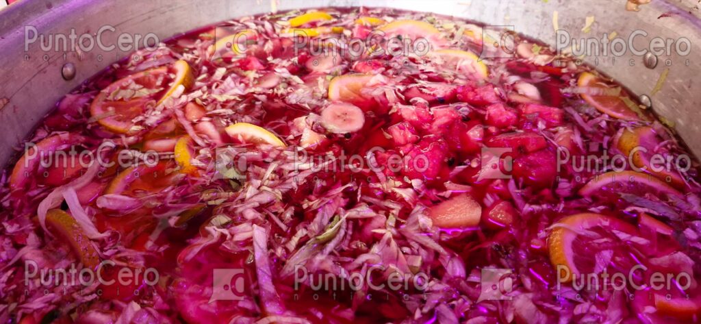 El punto culminante de esta visita es el reparto de la tradicional agua fresca de betabel, una receta que en esta casa de Albino García se prepara con especial esmero. Los ingredientes no son casualidad; cada trozo de fruta y cada hortaliza guardan un significado: