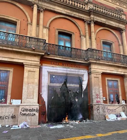 Uno de los hechos más visibles fue la quema de la puerta principal de la Presidencia Municipal de León, la cual fue incendiada durante el paso de la manifestación. Además, el edificio presentó pintas en su fachada.