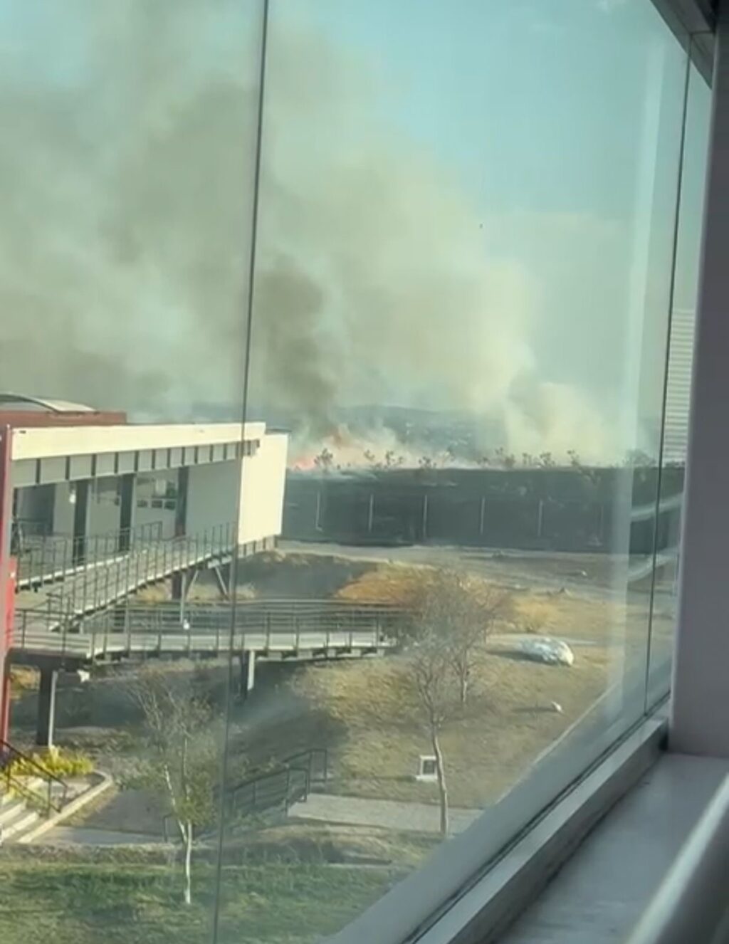 Un incendio de pastizal de grandes dimensiones provocó la evacuación total de la Universidad Incarnate Word, ubicada a un costado de la carretera Silao-Irapuato.