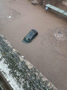 Los vehículos que se encontraban estacionados en la subterránea fueron arrastrados por la fuerte corriente que se formó debido a la tromba.