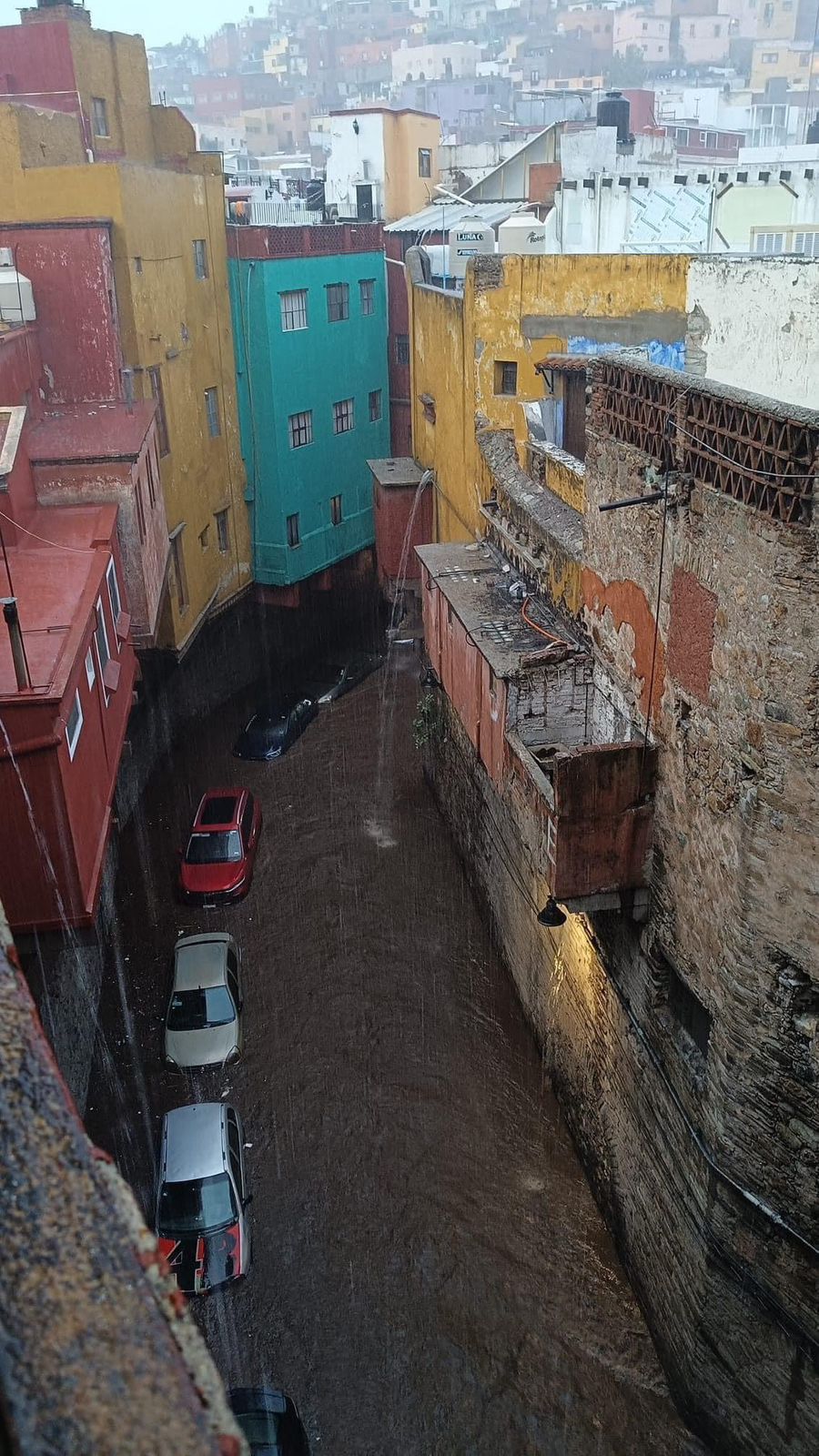 Las intensas lluvias de este domingo provocaron la inundación de la calle subterránea Miguel Hidalgo en la capital de Guanajuato, dejando varios vehículos atrapados y con daños severos.