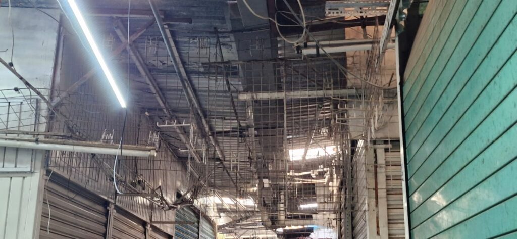 «HAY LÁMINAS VIEJAS, ALGUNAS SE VEN QUE ALMACENAN EL AGUA DE LA LLUVIA… ¡SI NOS DA TEMOR QUE UN DÍA EL PESO DE AGUA ESTANCADA LA TIRE! CAUSE DAÑOS A LOS LOCALES O QUE LE CAIGA A UNA PERSONA QUE VENGA PASANDO POR AQUÍ, OJALÁ SE DE LA VUELTA EL PRESIDENTE, PORQUE DESPUÉS DE LAS ELECCIONES YA NUNCA LO VIMOS.»