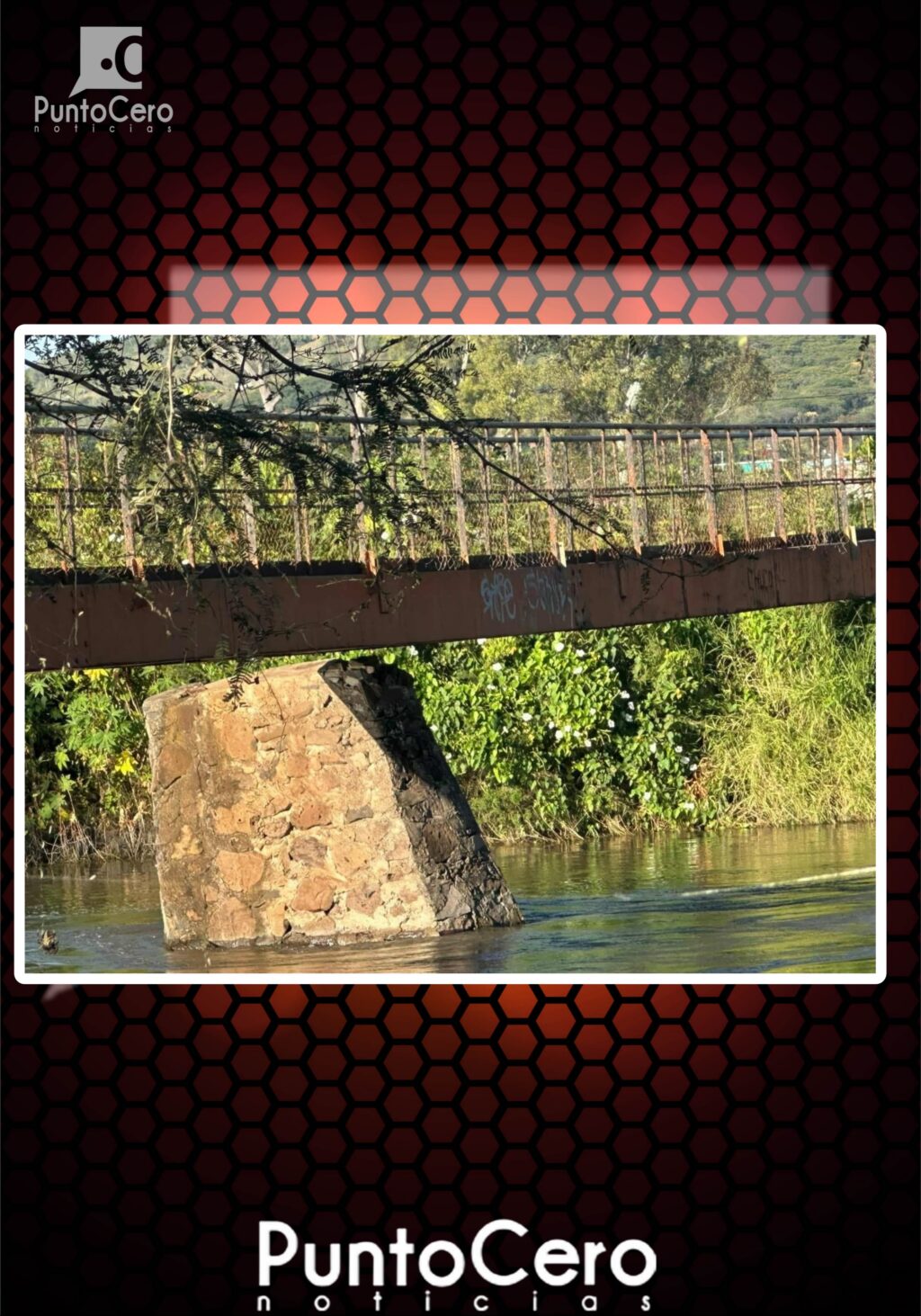 Por medio de r edes sociales han dado a conocer, que el puente presenta daños estructurales significativos: uno de sus pilares está ladeado y la estructura se encuentra «colgando».