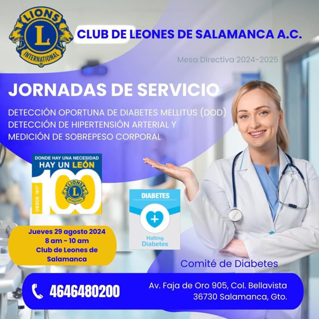 La mesa directiva del Club de Leones con sede en Salamanca, hacen una atenta invitación a la ciudadanía en general para acudir a esta jornada de servicio para la salud este Jueves en las instalaciones del Club de Leones.
