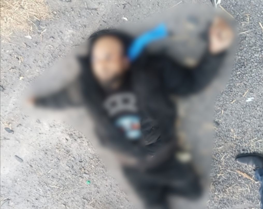 La víctima vestía una chamarra negra, pantalón negro y tenis negros, además de tener una cinta azul alrededor del cuello.