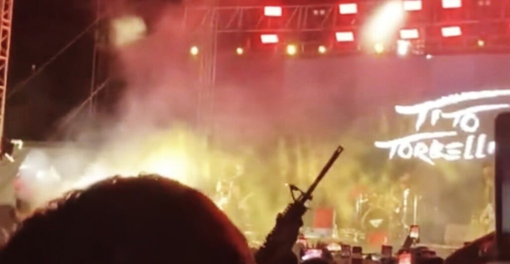 Durante un concierto de Tito Torbellino Jr. en la comunidad de Delgado de Abajo, Comonfort, Guanajuato, un hombre del público realizó varias descargas al aire con un arma larga.