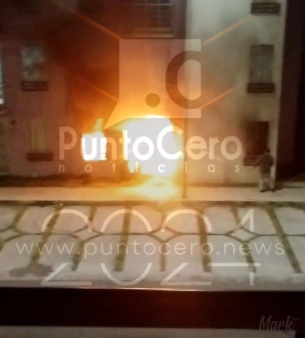 Tras recibir un reporte de incendio provocado, elementos de la Policía y el cuerpo de Bomberos acudieron al lugar para controlar el fuego.