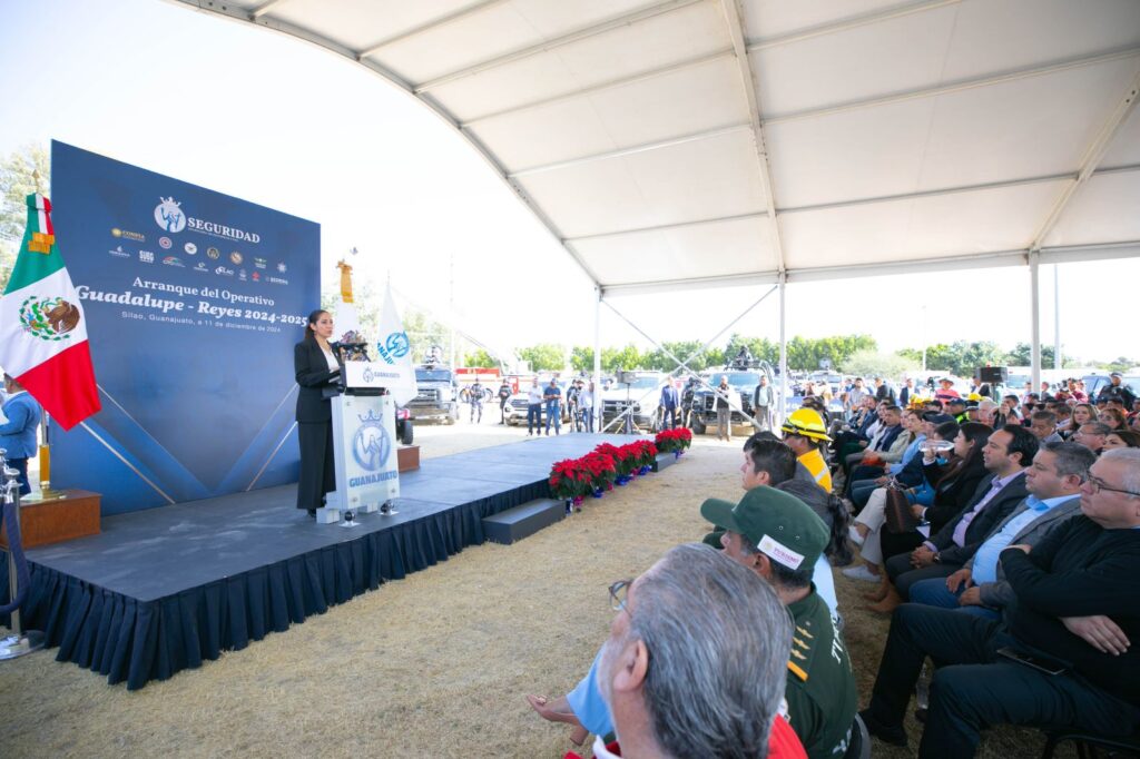 La gobernadora de Guanajuato, Libia Dennise García Muñoz Ledo, dio inicio al Operativo Guadalupe-Reyes 2024-2025, con el objetivo de proteger la integridad y el patrimonio de los guanajuatenses y visitantes durante la temporada navideña y de fin de año.